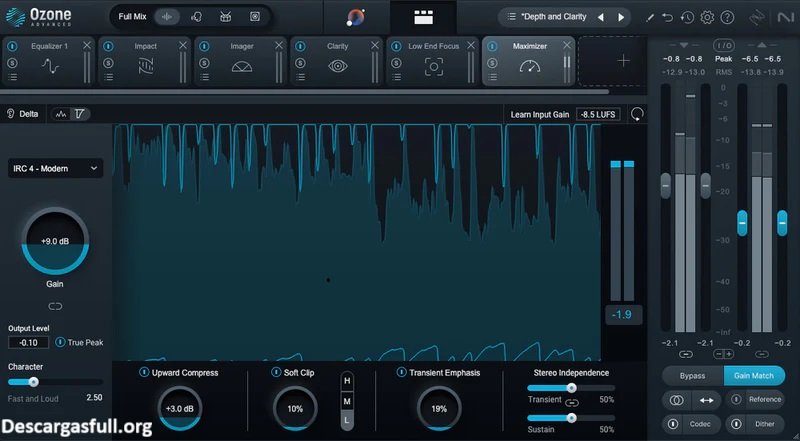 Descargar iZotope Ozone Full es un software de masterización que se ejecuta como aplicación independiente o como complemento VST3, AU o AAX en estaciones de trabajo de audio digital (DAW). Incluye módulos clásicos como ecualizador, compresor dinámico, excitador, imagen estéreo y maximizador, además de módulos vintage. iZotope Ozone El Master Assistant utiliza inteligencia artificial para analizar el material e iniciar una cadena de masterización optimizada, mientras que los módulos Transient/Sustain y Upward Compression permiten esculpir la dinámica del audio. Ozone Full se integra en flujos de trabajo modernos y soporta formatos de sonido envolvente y sistemas de alta resolución.