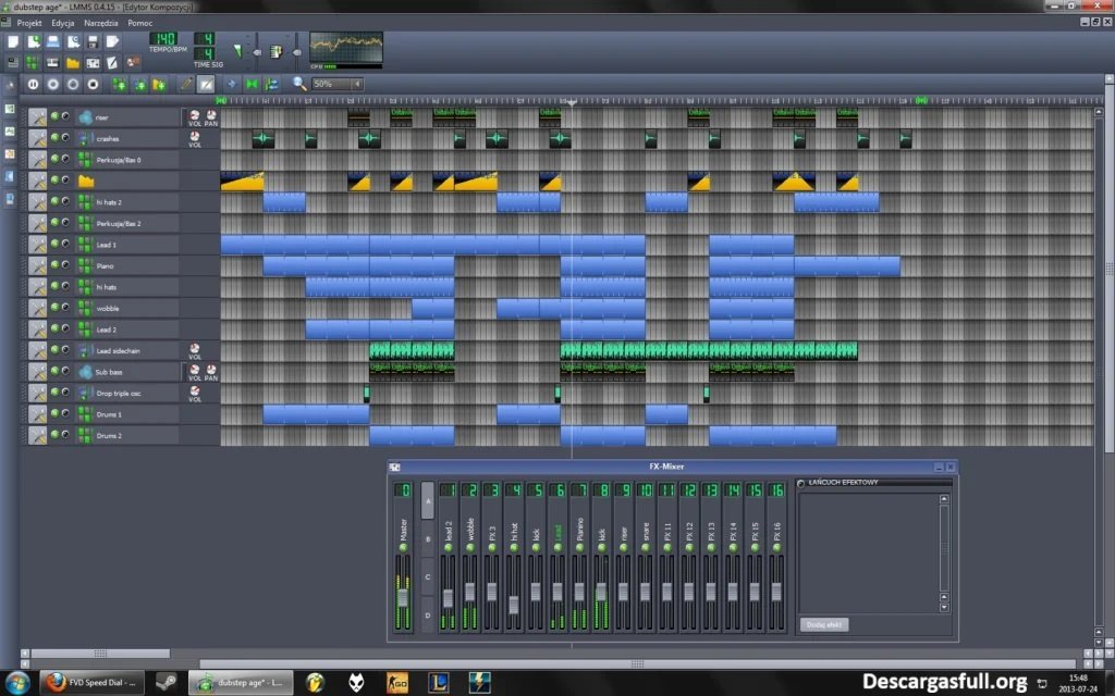 LMMS completo español es un programa de producción musical que permite crear melodías y ritmos mediante un secuenciador y uneditor de patrones, sintetizar sonidos, organizar muestras y aplicar efectos. Ofrece herramientas como el Song Editor para arreglar instrumentos y automatizaciones, el Beat Bassline Editor para secuenciar ritmos, un Piano Roll para editar patrones y melodías, y un FX Mixer que admite un número ilimitado de canales. El programa incluye soporte para plug‑ins VST y LADSPA, importación de archivos MIDI e integración co Hydrogen, LMMS editor de música gratis así como 16 sintetizadores incorporados que emulan chips clásicos de consolas y ordenadores. Además, es compatible con SoundFonts GIG y formatos GUS para utilizar bancos de instrumentos de alta calidad.