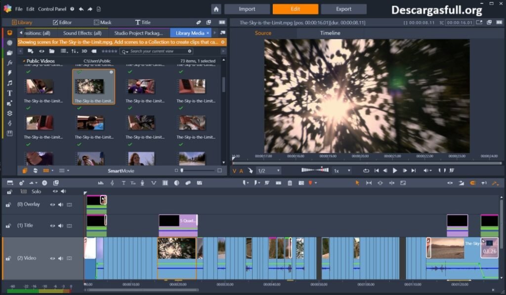 Descargar Pinnacle Studio Full es un potente software de edición de video diseñado para creadores que buscan precisión, control y resultados de calidad superior. Pinnacle Studio Español Mega (última versión) mejora la edición de video, tanto doméstica como profesional, al combinar una interfaz de línea de tiempo intuitiva con funciones avanzadas. Esta edición incluye herramientas inteligentes basadas en IA, como la conversión de voz a texto para subtítulos, el seguimiento avanzado de objetos y la corrección automática de color. Es más que una simple colección de herramientas: es un espacio de edición integral para la creación narrativa.